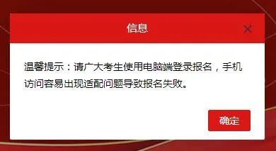溫馨提示:請廣大考生使用電腦端登錄報名,手機(jī)訪問容易出現(xiàn)適配問題導(dǎo)致報名失敗。