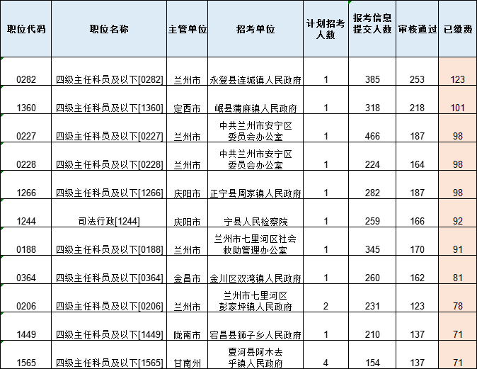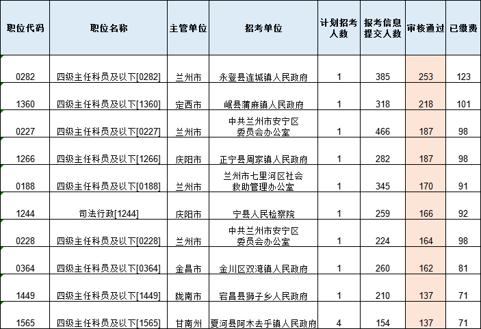 以下為審核通過(guò)人數(shù)最多的前十崗位:
