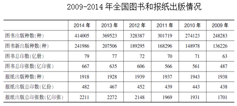 問題:2009-2014年間,圖書出版種數(shù)與上年相比,增量最大的年份是:( )