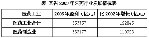 問題:2003年,醫(yī)藥工業(yè)總的盈利比2002年增長( )。