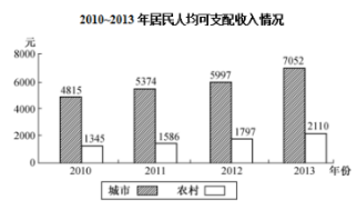 【答案】A【解析】從圖中可知,2013年城市居民人均可支配收入為7052元,2010年為4815元,則年均增長率為