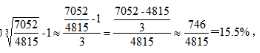 【解析】這兩個數(shù)據(jù)之間的增長率為:(833.09-738.32)/738.32=0.128,那么這兩個數(shù)字的增長率就是12.8%。這樣計算顯然比較麻煩,我們可以直接口算出它的增長量為833.09-738.32,也就是95左右,而小數(shù)738.32的10%、20%我們是能很快計算出來的,95就相當于小數(shù)738.32的10%以上了。那這兩個數(shù)的精確度同樣大于估算方法——有效數(shù)字法的誤差在正負5%左右。這樣我們就可以免去除法運算,快速估算選項精確度。