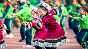 △內(nèi)蒙古呼和浩特,南茶坊小學(xué)編排了一套具有民族特色的課間操。(圖/視覺(jué)中國(guó))