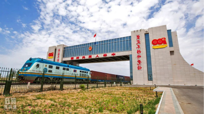 △2021年7月,一列中歐班列駛?cè)攵B浩特國(guó)門(mén)。(圖/視覺(jué)中國(guó))