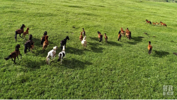 △內(nèi)蒙古烏蘭察布,馬群奔跑在輝騰錫勒草原。(圖/視覺(jué)中國(guó))