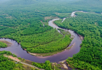 這是內(nèi)蒙古呼倫貝爾根河源國(guó)家濕地公園景色(無(wú)人機(jī)照片,2021年6月8日攝)。新華社記者連振攝