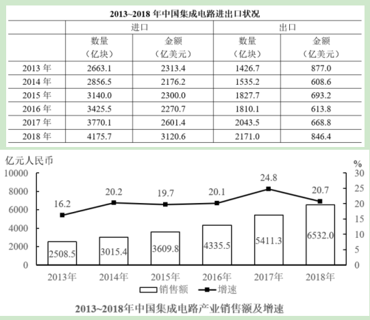 120.關(guān)于中國集成電路產(chǎn)業(yè)銷售及進(jìn)出口狀況,能夠從上述資料中推出的是( )。