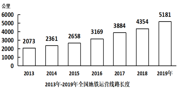 A.2019年全國(guó)城軌交通運(yùn)營(yíng)線路總里程不到6000公里
