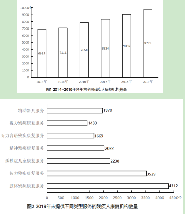 截至2019年末,全國(guó)已有殘疾人康復(fù)機(jī)構(gòu)9775個(gè),比2018年增長(zhǎng)739個(gè)。2019年,1043.0萬(wàn)殘疾兒童及持證殘疾人得到基本康復(fù)服務(wù),其中包括0~6歲殘疾兒童18.1萬(wàn)人。