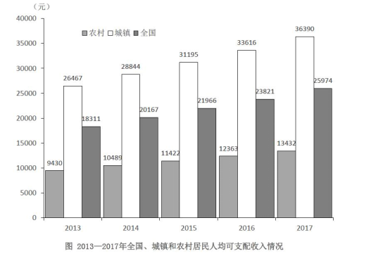 C、2014—2017年全國城鎮(zhèn)與農(nóng)村居民人均可支配收入的差額逐年減少
