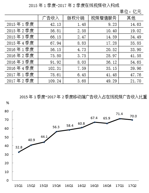 126、2017年上半年,在線視頻收入( )