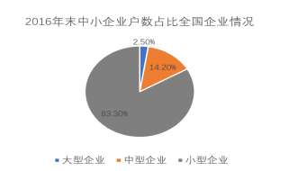 國家統(tǒng)計局數據顯示,2016年末,全國規(guī)模以上中小工業(yè)企業(yè)(以下簡稱“中小企業(yè)”)37.0萬戶,比2015年末增加0.5萬戶企業(yè),其中,中型企業(yè)5.4萬戶,占中小企業(yè)戶數的14.6%,小型企業(yè)31.6萬戶,占中小企業(yè)戶數的85.4%。