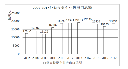 B、圖中外商投資企業(yè)進(jìn)出口總額同比下降的年份超過總年數(shù)的1/3