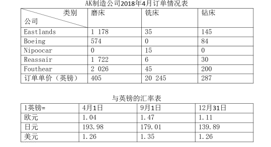 115.AK制造公司銑床的利潤為售價(jià)的3.9%,磨床的利潤為售價(jià)的5.1%,則關(guān)于上述所有磨床和銑床訂單按英鎊計(jì)價(jià)的利潤額闡述正確的有( )個(gè)。