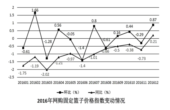 B、2016年,每個月網(wǎng)購固定籃子價格指數(shù)都低于上年同期