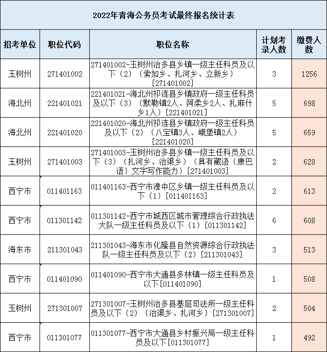 附件:青海省2022年公開考錄公務(wù)員考試最終報(bào)名統(tǒng)計(jì)表