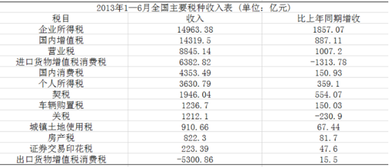④2013年我國上半年企業(yè)所得稅、國內(nèi)增值稅兩項之和超過同期稅收總收入的50%