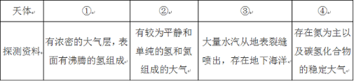 閱讀表格,依據(jù)探測資料判斷將來最有可能孕育生命的天體是( )