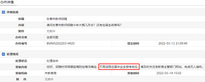 據(jù)東營市教育局答網(wǎng)友問,2022東營教師招聘,不再設(shè)限應(yīng)屆生報考崗位!詳情如下: