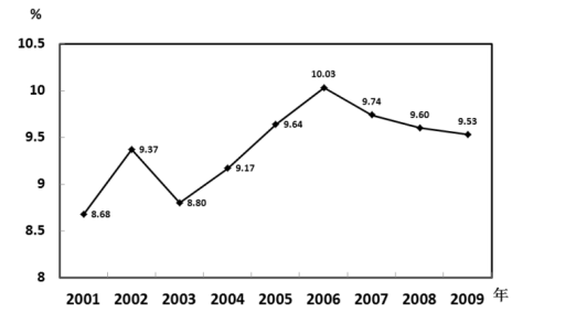 2001—2009年全國(guó)海洋生產(chǎn)總值占國(guó)內(nèi)生產(chǎn)總值比重