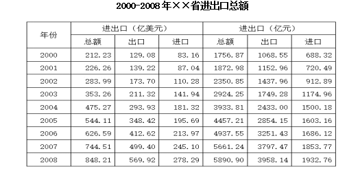 C、2001-2008年,該省出口總額呈逐年上升趨勢(shì)