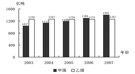 B、2003-2006年,乙國(guó)的年碳排放量穩(wěn)中有升