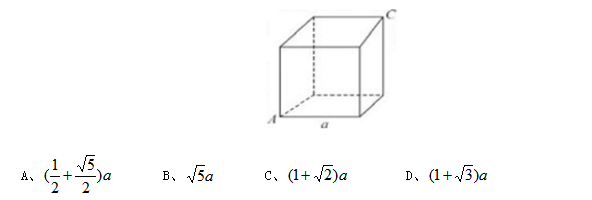 105.一只螞蟻從下圖的正方體的A頂點(diǎn)沿正方體的表面爬到正方體的C頂點(diǎn),設(shè)正方體邊長(zhǎng)為a,問(wèn)該螞蟻爬過(guò)的最短路程為:( )