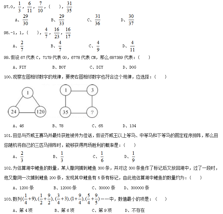四、數(shù)量關(guān)系,共10題,本部分包括數(shù)字推理、數(shù)理計(jì)算。
