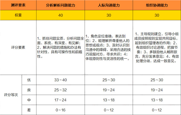 廣東省考目前已經(jīng)進(jìn)入全面?zhèn)淇济嬖囯A段,近幾年常以無(wú)領(lǐng)導(dǎo)小組討論的面試形式,所以我們今天主要討論一下無(wú)領(lǐng)導(dǎo)小組面試的評(píng)分標(biāo)準(zhǔn)。無(wú)領(lǐng)導(dǎo)主要考察考生的各方面能力,和結(jié)構(gòu)化面試完全不同,它不是激烈的辯論,而是意見的交流討論;不是用氣勢(shì)壓人,而是用氣度服人;不是獨(dú)占鰲頭,而是群策群力引導(dǎo)指引。在這個(gè)基礎(chǔ)上,我們必須進(jìn)行準(zhǔn)備,才能有的放矢。