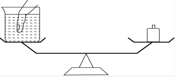 20.如下圖所示,裝有水的燒杯放在天平一端,另一端放置砝碼使天平平衡,此時再放入一手指在水中,若手指完全靜止在水中且沒有觸碰燒杯壁和燒杯底部,且水也沒有溢出,那么這是天平的狀態(tài)是: