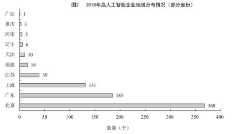 B.截至2018年底,中國人工智能企業(yè)地域分布情況中,廣東企業(yè)數(shù)量最多