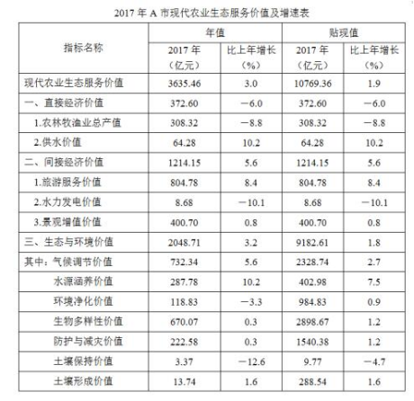 B.2017年A市現(xiàn)代農(nóng)業(yè)生態(tài)服務(wù)價(jià)值年值增長率、貼現(xiàn)值增長率最低的是同一個(gè)指標(biāo)