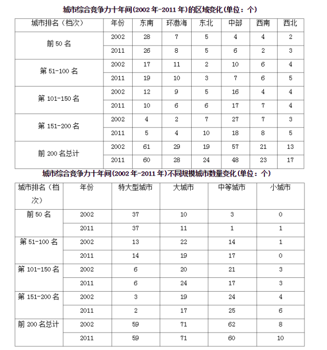 94.十年間,與其他規(guī)模的城市相比, 在各個排名檔次內(nèi)的城市數(shù)量變化幅度最小。( )