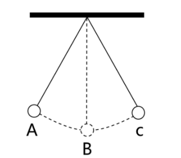 83. 如圖,小球在細繩的牽引下從A點自由擺動到C點,B點是最低點。若忽略空氣阻力,則下列說法不準確的是:( )
