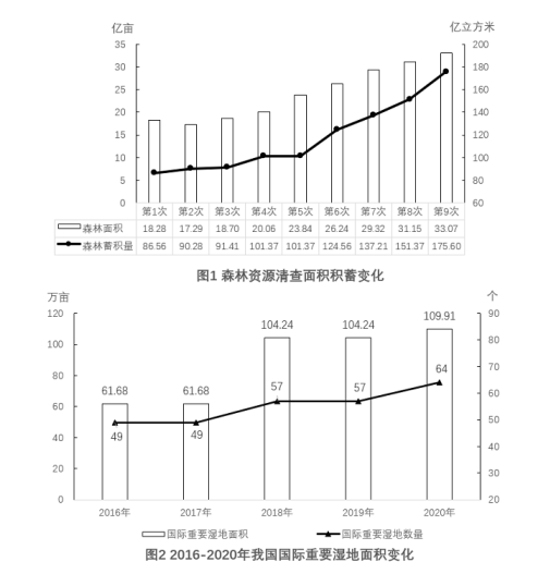 B.第5次至第9次森林資源清查,我國森林面積和森林蓄積量的變化趨勢一致