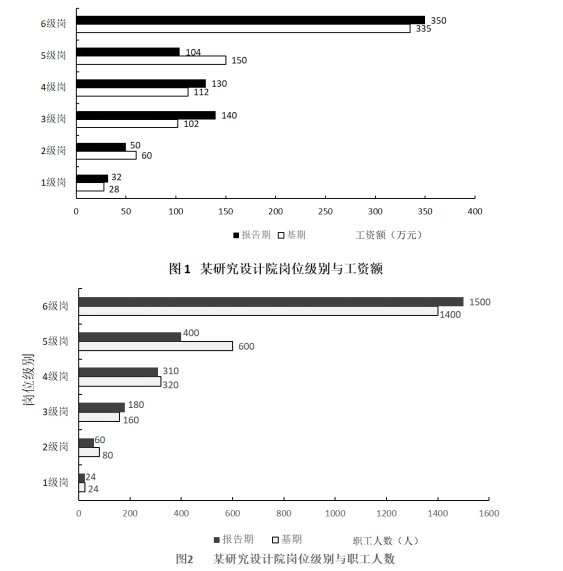 某研究設計院向不同崗位級別職工支付的工資額以及該院職工人員結構資料分別如圖1和圖2。根據資料回答問題。