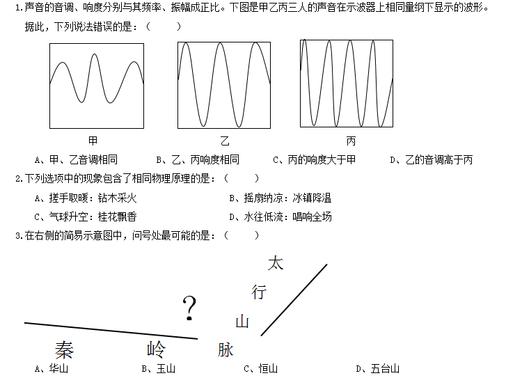 一、常識判斷,根據題目要求,在四個選項中選出一個最恰當的答案。