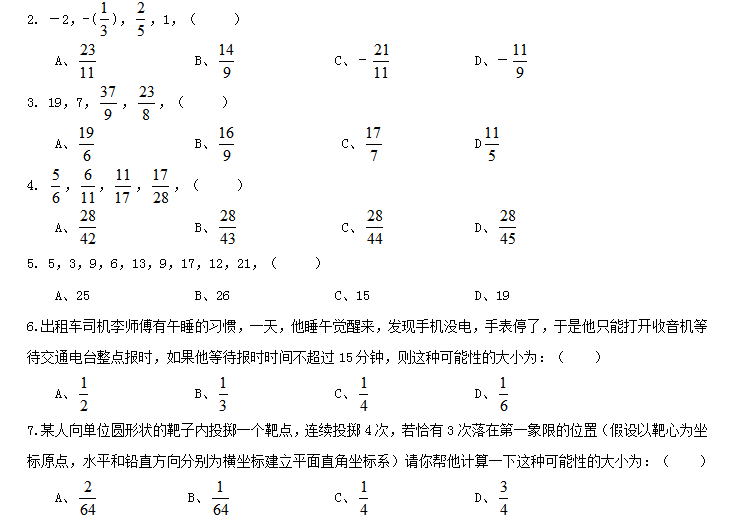 一、數(shù)量關(guān)系,共10題,本部分包括數(shù)字推理、數(shù)理計(jì)算。