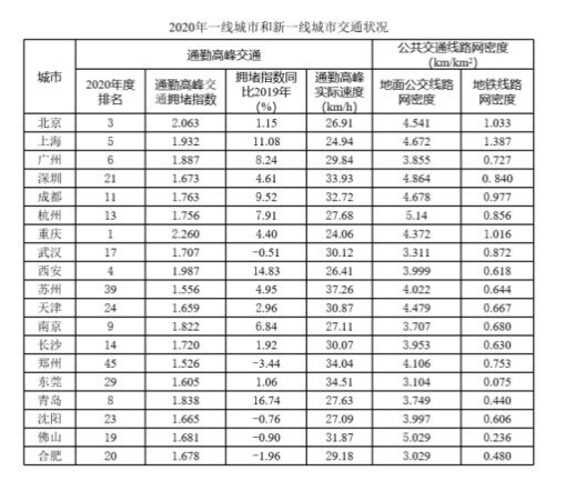 113.2020年,小張在下列哪個新一線城市居住會感覺公共交通最便利?( )