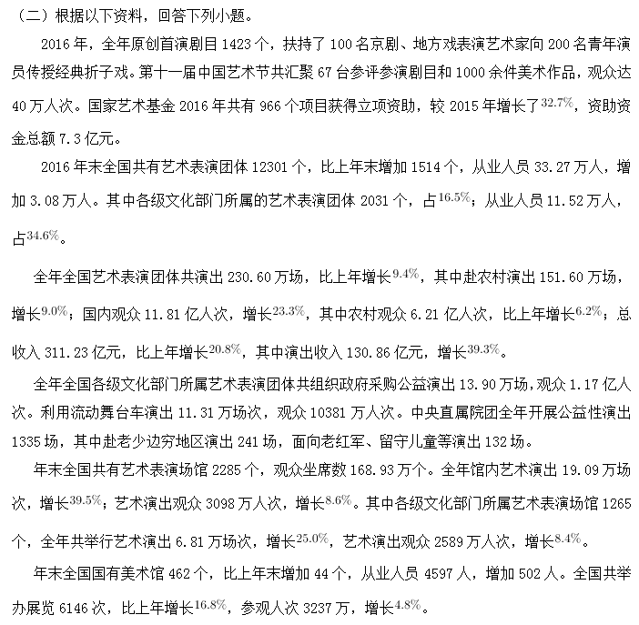 D、全國(guó)各級(jí)文化部門(mén)所屬藝術(shù)表演場(chǎng)館藝術(shù)演出