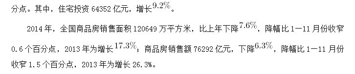 D、2014年住宅投資占房地產(chǎn)開發(fā)投資的比重不到七成