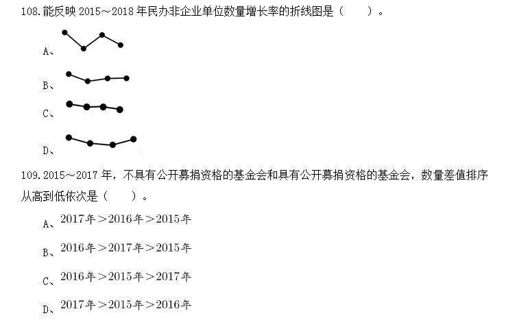 107.若按2014~2018年社會團(tuán)體數(shù)量的年均增長速度持續(xù)增長,2019年的社會團(tuán)體數(shù)量約為( )萬個。
