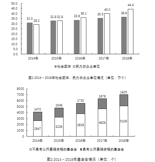 截至2018年底,全國共有社會組織81.7萬個,比上年增長7.3%,其中社會團(tuán)體36.6萬個,民辦非企業(yè)單位44.4萬個,基金會7034個;吸納社會各類人員就業(yè)980.4萬人,比上年增長13.4%。