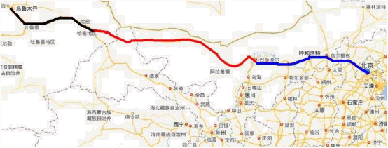 C、共經(jīng)過北京、河北、內(nèi)蒙古、甘肅、新疆5省份