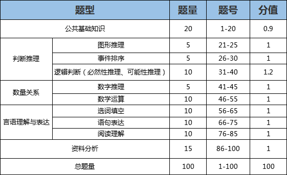 行政職業(yè)能力測驗為客觀性試題,考試時限90分鐘,滿分100分。