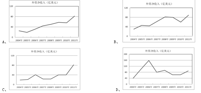 89.下列圖形與2004年至2011年B國(guó)外資凈流入狀況最為相符的是( )。