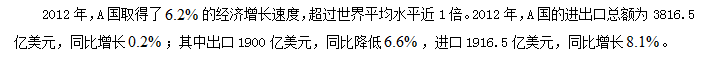 A、2012年,A國(guó)的進(jìn)口增長(zhǎng)速度快于經(jīng)濟(jì)和出口的增長(zhǎng)速度