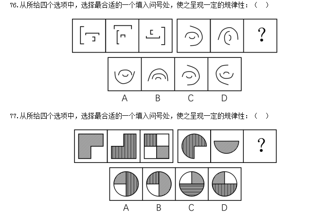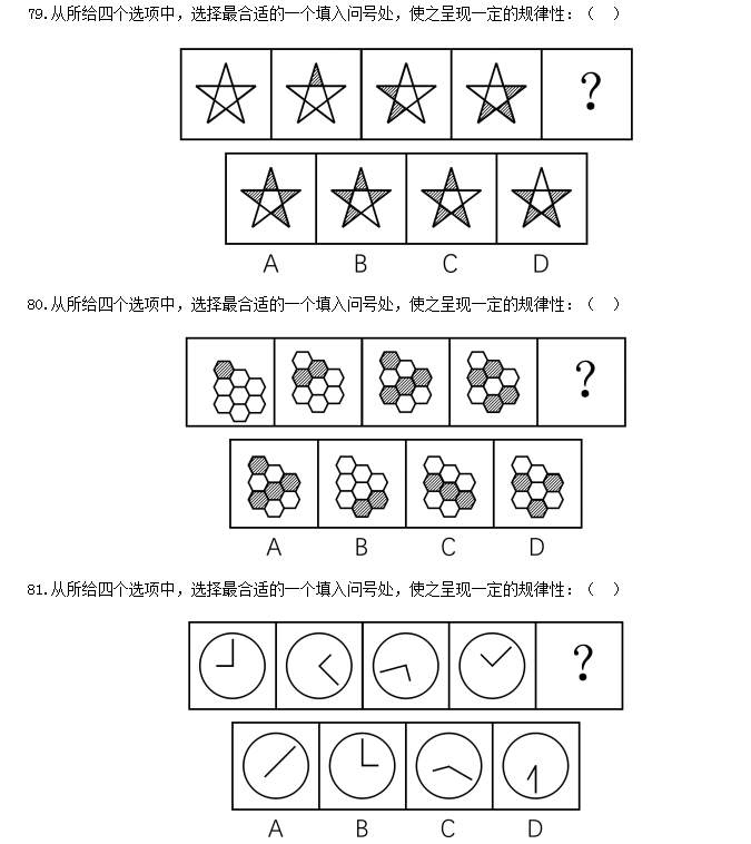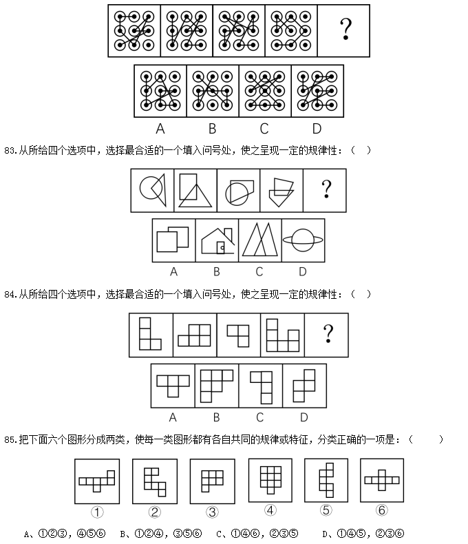 82.從所給四個(gè)選項(xiàng)中,選擇最合適的一個(gè)填入問(wèn)號(hào)處,使之呈現(xiàn)一定的規(guī)律性:( )
