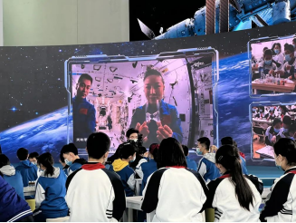 此次太空授課由中央廣播電視總臺進行了全程現(xiàn)場直播,在中國科技館設地面主課堂,在西藏拉薩、新疆烏魯木齊設2個地面分課堂。