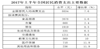 120.2017年上半年,全國居民消費支出主要數(shù)據(jù)按消費類別分。下列哪一個經(jīng)濟指標值最大?( )